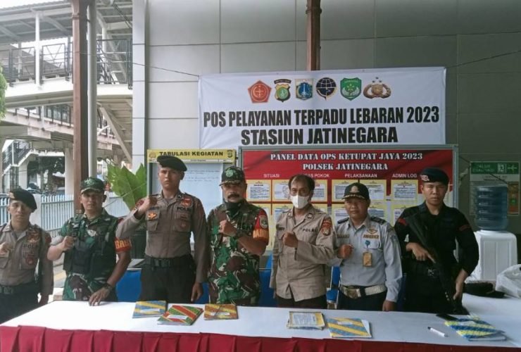 Pengamanan Arus Mudik H -3 Lebaran, Babinsa Koramil 01/Jatinegara Bersama Tiga Pilar Amankan Stasiun