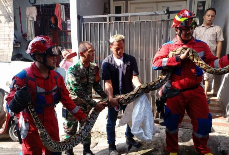 Beberin.com, Jakarta – Babinsa Kel Pela Mampang Serka Mulyono dan petugas Damkar Kecamatan Mampang prapatan berhasil mengevakuasi ular Sanca sepanjang 3,5 meter yang masuk pekarangan rumah warga di RT 05/03 Kel Pela Mampang, Kec Mampang Prapatan, Jakarta Selatan Jum’at (5/5/2023). ...