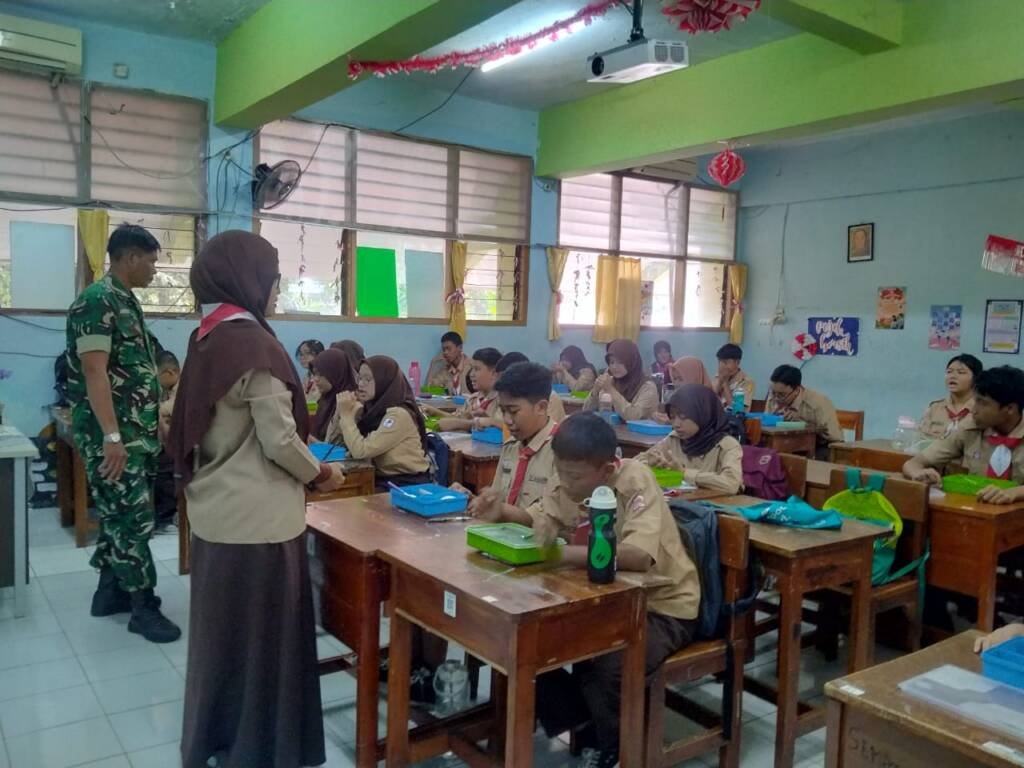 “Pada kesempatan pengawasan pengolahan bahan baku makanan dan distribusi MBG yang dilaksanakan 2 tahap pengiriman yakni pengiriman pagi pada pukul 08.30 wib dan pengiriman siang pada pukul 11.30 wib , Danramil Pulogadung Mayor Arm Leo Valisa menyampaikan, untuk Program Makan Bergizi ini Koramil melalui Bati Tuud Serka Nanang, Babinsa Serda Anas Hisyam dan Serda Ipong membantu pelaksanaan kegiatan ini. Makan Bergizi Gratis merupakan program Unggulan Pemerintah yang telah ditetapkan dan dilaksanakan di seluruh wilayah Provinsi di Indonesia.