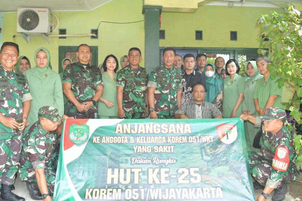Dalam kesempatan anjangsana Danrem 051/Wkt bersama Ketua Persit KCK Koorcab Rem 051 PD Jaya dan rombongan berkunjung ke kediaman Sertu M. Zainudin Babinsa anggota Koramil 06/Cimanggis Kodim 0508/Depok yang menderita sakit patah tulang kaki kanan di Rumdis Babinsa Kel. Cilangkap Kec. Tapos dan Serda Mahrus Ali anggota Koramil 04/ Keb. Lama Kodim 0504/JS yang sakit diabetes dan cuci darah di komplek Kodam Bintaro Jl. Blimbing No. 22A RT 001 RW 004 Kel. Pesanggrahan.