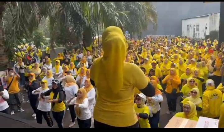 Senam masal yang digelar di DPD Golkar Kota Depok sendiri diikuti ribuan peserta dengan dimeriahkan berbagai doorprize.