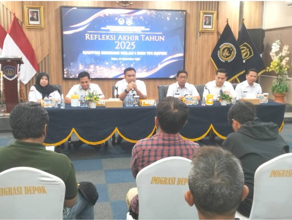 menunjukkan kepercayaan masyarakat yang tinggi terhadap layanan Imigrasi Depok, khususnya dalam pelayanan paspor dan izin tinggal,” ujar Kepala Kantor Imigrasi Kelas I Non TPI Depok, Irvan Triansyah, di dampingi jajarannya, Rabu (31/12/2025), saat acara refleksi akhir tahun 2025, di Kantor Imigrasi Depok, Jawa Barat.