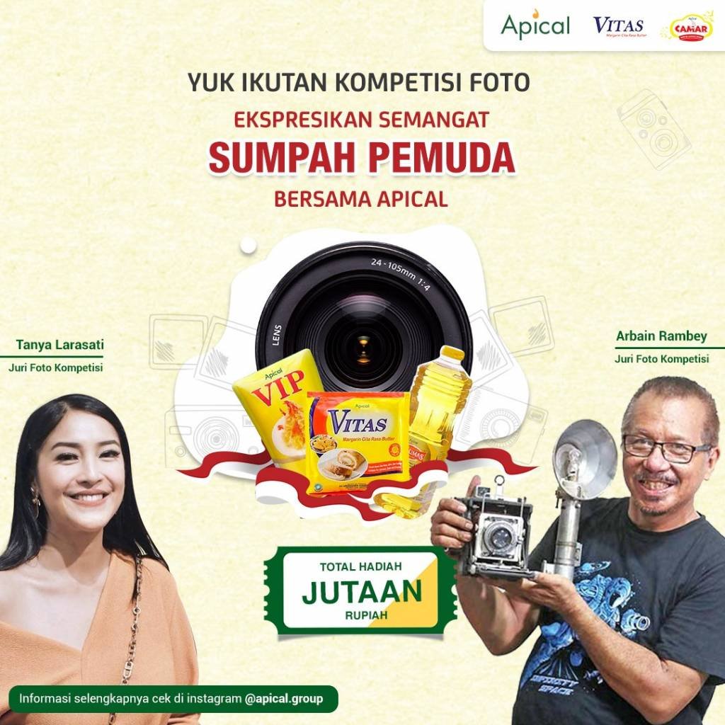 Melalui kegiatan ini, Apical ingin terus memotivasi untuk bangkit dari pandemi dan tetap positif untuk berkarya melalui foto yang mencerminkan semangat Sumpah Pemuda. Untuk info lebih lengkap mengenai kompetisi, dapat diakses melalui Instagram @apical.group.